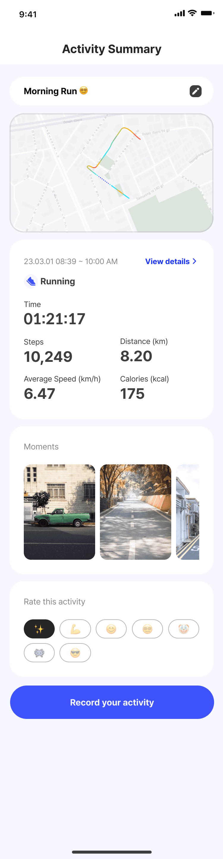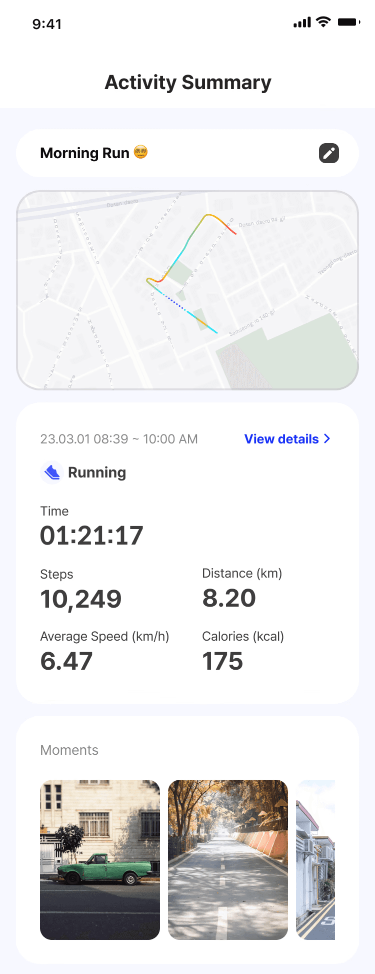 Places become memorable when they carry personal stories. People want to share "where something special happened," not just distance/pace data.